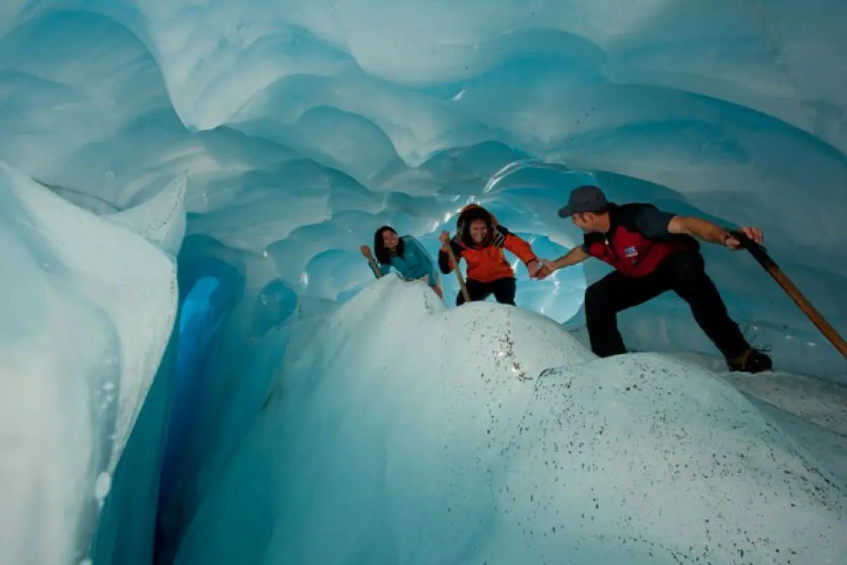 Your landing site on the ice is a remote and exceptionally beautiful part of the glacier. At this stage, your guide outfits you with crampons, specially designed for these ice conditions and you follow the ice steps cut by your guide as you explore the amazing formations and ice caves which are only seen here.